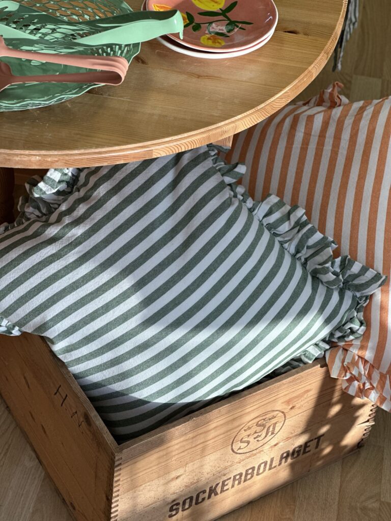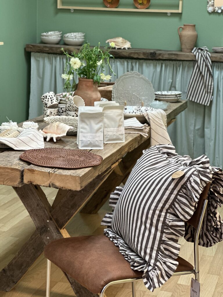 Man blir aldrig riktigt klar. Allt är i ständig rörelse och det är väl härligt! Så nu, är en del av butiken grön (!) Tog några bilder på de nya produkterna som kom idag, (kuddar, korgar och rottingvaser, krukor) lägger in dem eftersom på stjalk.se eller kom in till butiken och kika 🧡