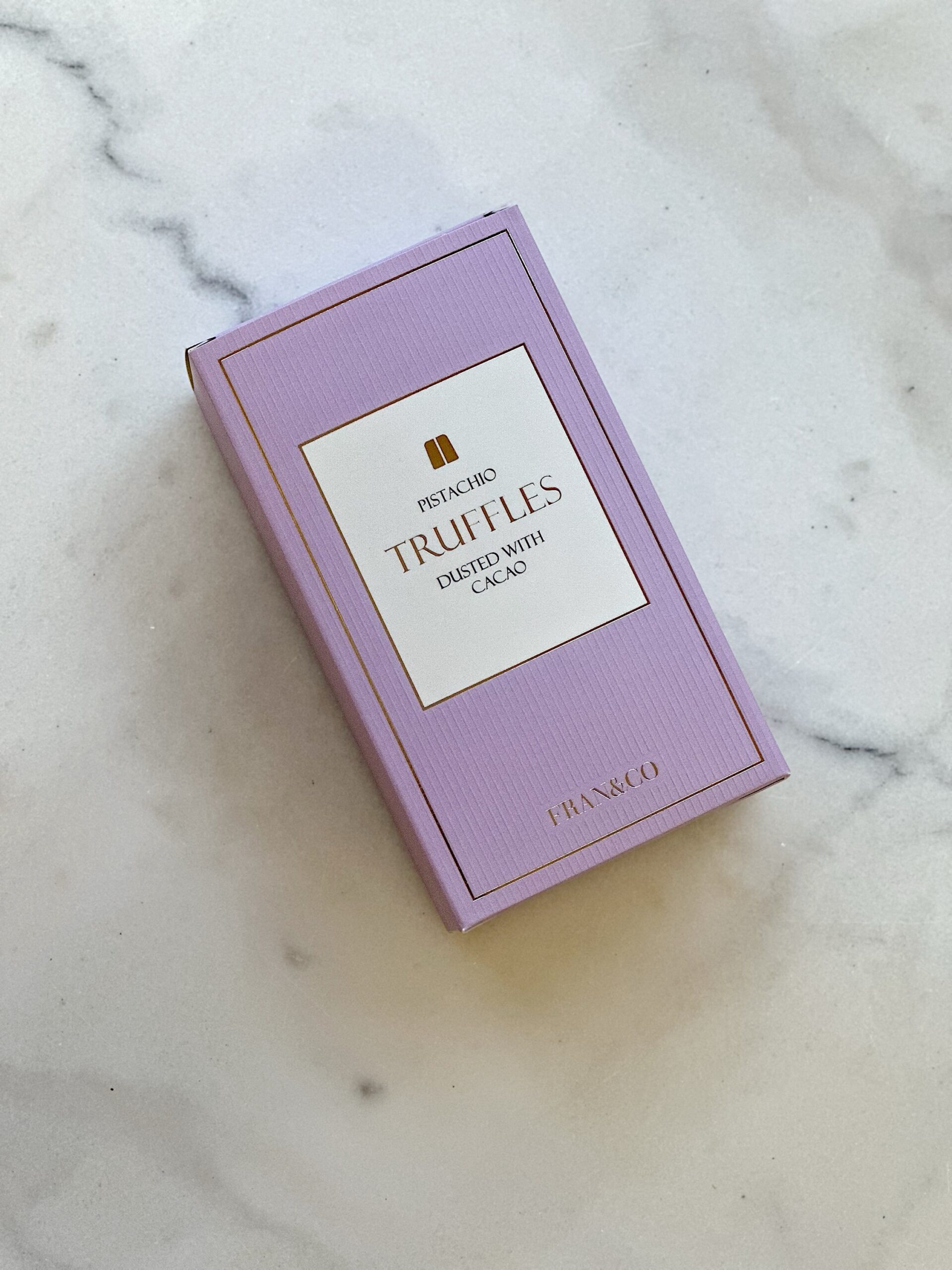 I en lyxig och fin förpackning finner du mjuka och krämiga tryfflar med smak av pistage, pudrad med kakao.