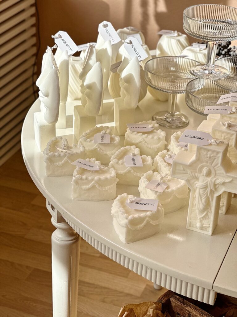 Vackra handstöpta bivaxljus från Björnlunda Arvet. Gjorda av lokalt bivax och färgade med växtpigment. Naturlig doft, matt yta och unik karaktär.