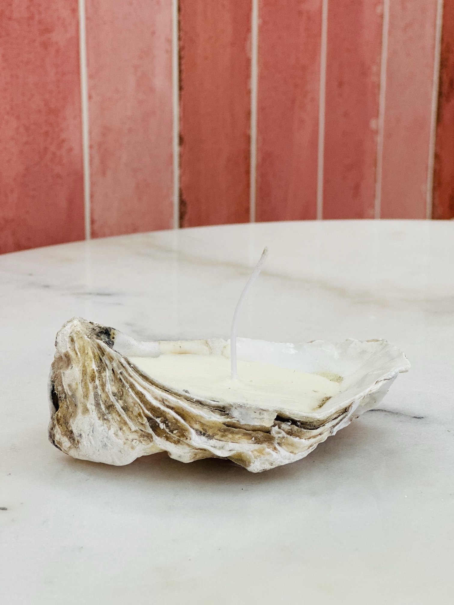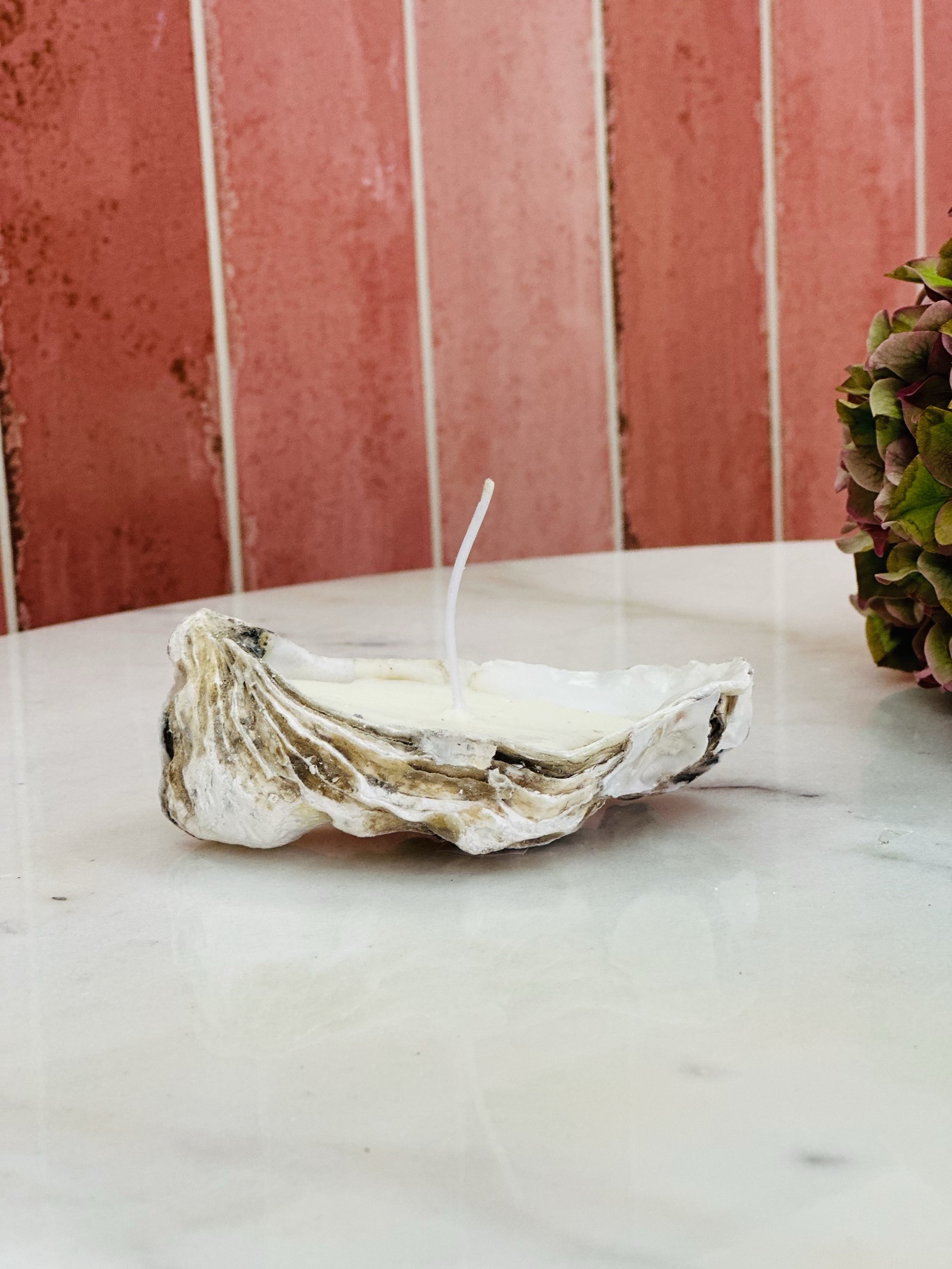 Skapa en stämningsfull och lyxig atmosfär med vår Oyster Shell Candle – ett handgjort ljus gjutet i ett äkta ostronskal. Varje ljus är unikt i form och struktur, vilket gör det till en perfekt inredningsdetalj eller gåva till någon du tycker om.
